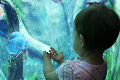 Now, I knew that Audrey didn’t like water spraying or being poured in her face. She makes that well known when I wash her hair. So, I was interested to see how she would react with water spraying everywhere. Well…she reacted exactly as I predicted---she hated it. I soon figured out that if I turned the water pressure down just so a little water would come out, she would play in it. Really she just enjoyed trying to drink it.